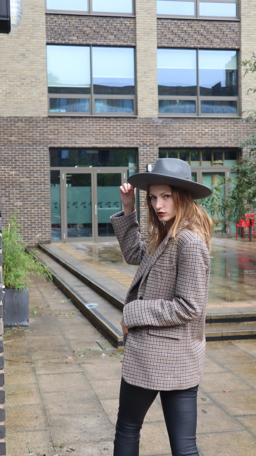 Modern, understated, and effortlessly sophisticated, Evelyn in Grey offers a refined interpretation of the timeless rancher silhouette. Designed for versatile styling, this structured piece brings quiet confidence and contemporary elegance to any wardrobe.